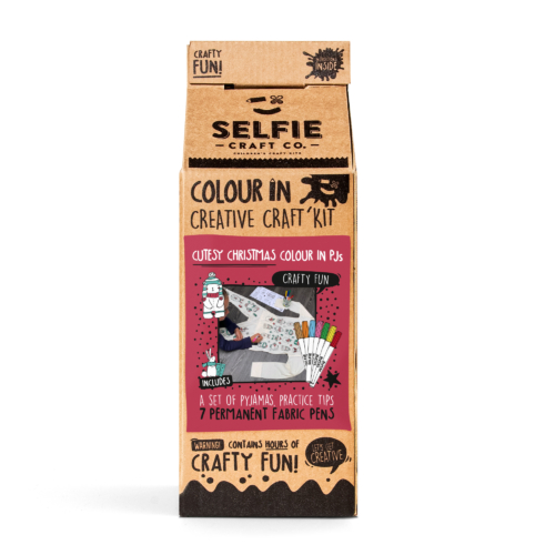 This beautifully packaged children’s colour in, creative kit includes; a long-sleeved pyjama top and bottoms, seven fabric colour in pens and colour in practice hints & tips available for ages 3-12. The lightweight jersey blend pyjama set features a unique colour in design. The colours will not fade and can be worn time and time again. The products are designed, handprinted in the UK exclusively for the Selfie Craft Co.