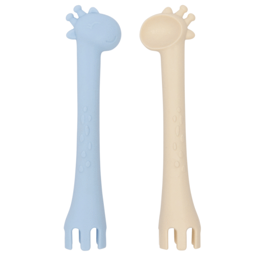 Les Enfants Cutlery Set has been designed with ease of use and practicality in mind. The fun giraffe shape has a spoon on one end and a fork on the other and offers extra grip in the middle. It is flexible and soft on the baby’s gum and can also double as a teething toy.