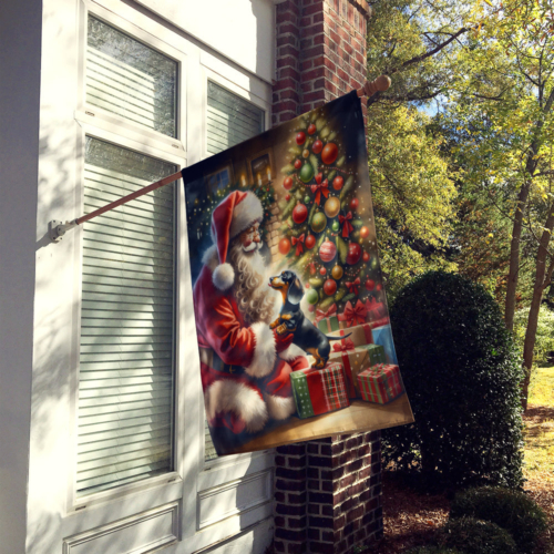 House Flag featuring breed specific Dachshund artwork. Celebrate Christmas with this Christmas Large Flag. Presenting our Heavy Duty Polyester House Size Decorative Sleeve Pole Flag, a vibrant addition to enhance the aesthetic appeal of your home. This large decorative flag, measuring approximately 28 x 40 inches, offers ample coverage and visibility. Each flag is meticulously sewn and made individually, ensuring a unique piece that may slightly vary in size. It’s a sleeve pole flag, designed to fit a standard decorative flag pole effortlessly. Please note that the flag pole and bracket are not included and should be purchased separately. What sets our flag apart is its dual-sided print. The design is mirrored on both sides of the fabric, allowing for uniform visibility regardless of the angle. Printed in full color, our flag showcases vibrant hues that truly stand out. To ensure lasting vibrancy and durability, the dyes are heat-set into the fabric. This ensures your flag remains bright and captivating through various weather conditions. Elevate the look of your home with our Heavy Duty Polyester House Size Decorative Sleeve Pole Flag!