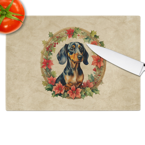 Glass Cutting Board featuring breed specific Dachshund artwork. Celebrate Christmas with this Christmas Cutting Board. Introduce your kitchen to the vibrant, large Decorative Glass Cutting Board from Caroline’s Treasures. Crafted from resilient tempered glass, this board is not only a utilitarian necessity but also a colorful art piece. With its generous dimensions of 15 inches in height and 12 inches in length, it offers ample space for all your cutting needs. Every piece showcases captivating artwork from distinguished artists, bringing an aesthetic edge to your kitchen. Beyond its attractive design, this cutting board ensures your countertop stays pristine and unscathed, owing to its heat-resistant properties. Engineered with user convenience in mind, it features non-skid feet for stability, and rounded corners for additional safety. Its robust construction renders it virtually unbreakable, guaranteeing longevity. The board comes with protective feet bumpers, maintaining its position during use. This product is recommended to be hand washed only. Proudly printed and assembled in the United States, this cutting board exemplifies superior craftsmanship. With Caroline’s Treasures’ Decorative Glass Cutting Board, you’re investing in a blend of functionality and artistic flair.