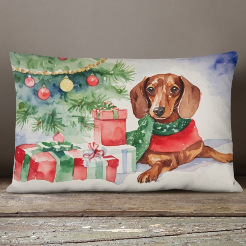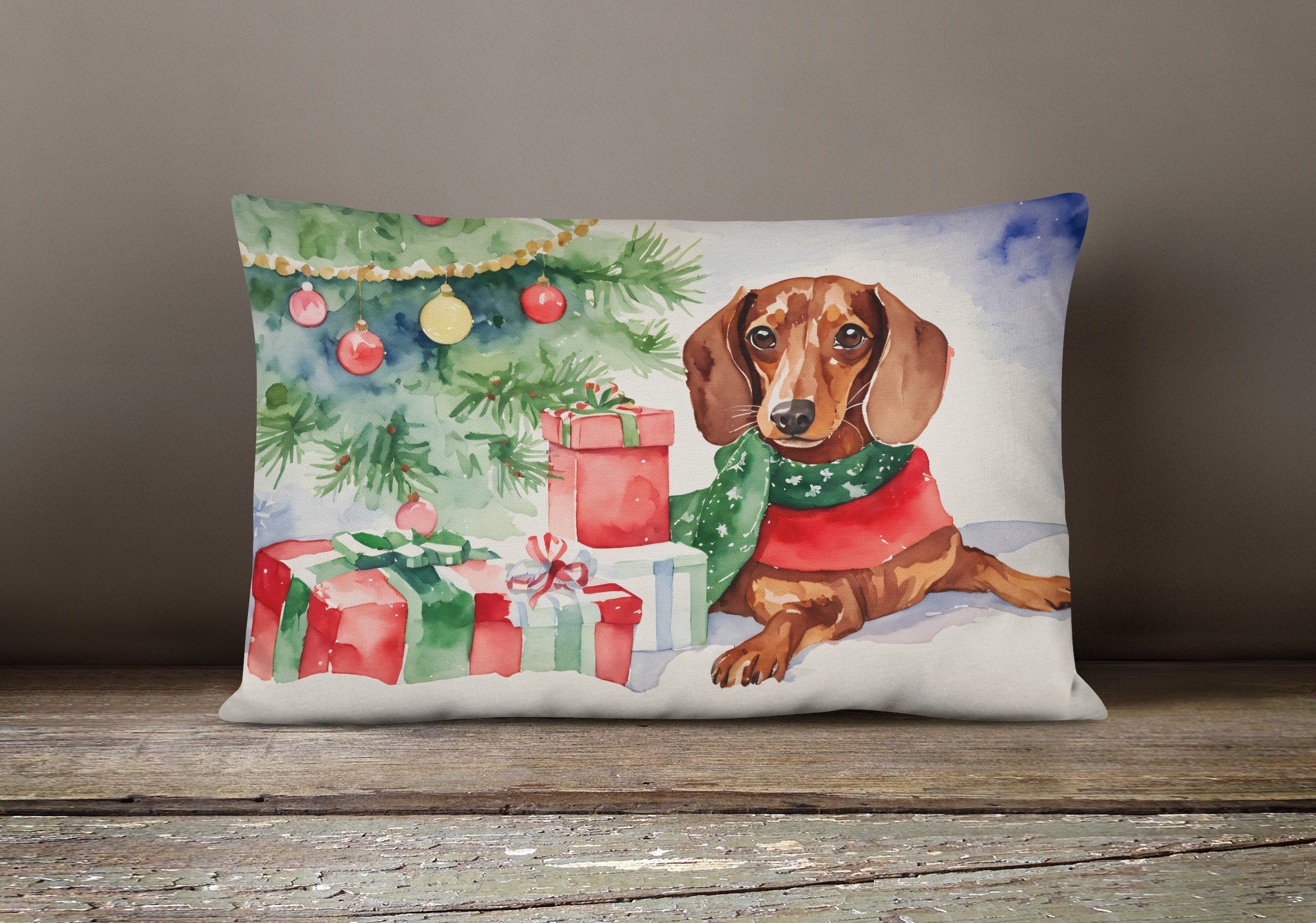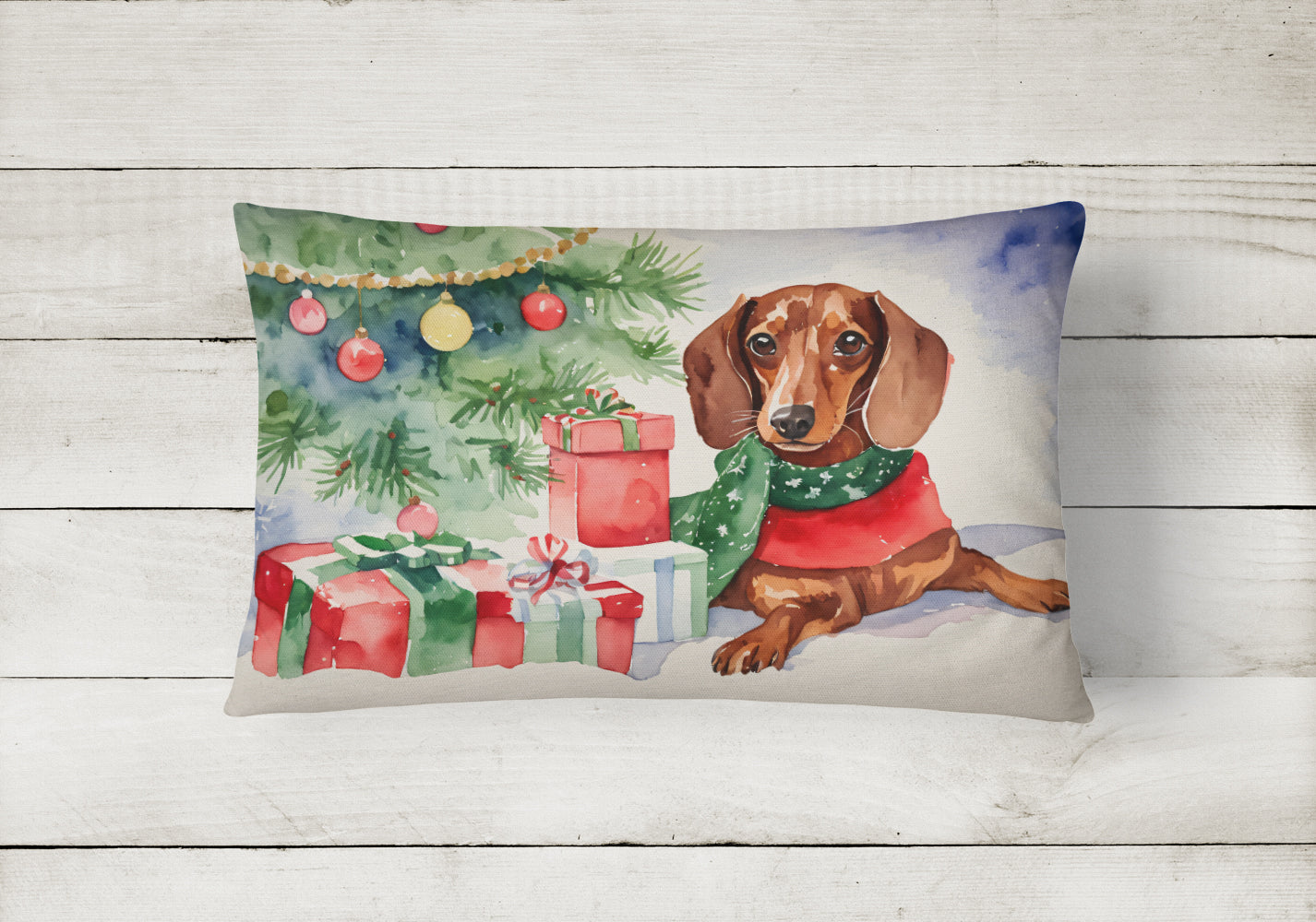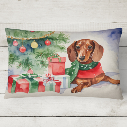 Throw Pillow featuring breed specific Dachshund artwork. Celebrate Christmas with this Christmas Pillow. Embrace the fusion of comfort and style with Caroline’s Treasures Fabric Decorative Pillow. This 12×16 inch outdoor pillow is designed to complement your patio furniture, adding a splash of color and artistry to your outdoor setting. Constructed with a 100% Polyester Fabric pillow sham filled with a plush pillow form, this cushion is as comfortable as it is durable. Our outdoor pillow utilizes a novel fabric, meticulously woven for enhanced water resistance. This soft canvas material is equally suited for your indoor couch as well as outdoor settings such as the patio, porch, or veranda. To ensure enduring vibrance, we employ colorfast dyes resistant to fading even when subjected to weather elements. The making of this pillow involves the delicate sewing together of three fabric pieces to create a sham, into which a polyester insert is carefully placed. The result is an overstuffed pillow that tenaciously holds its shape. With both the sham and the pillow insert crafted in the United States, these handmade pillows are a testament to superior local craftsmanship. Note that as these pillows are handmade, sizes may slightly vary, enhancing their unique appeal. Enjoy comfort in style with Caroline’s Treasures Fabric Decorative Pillow.