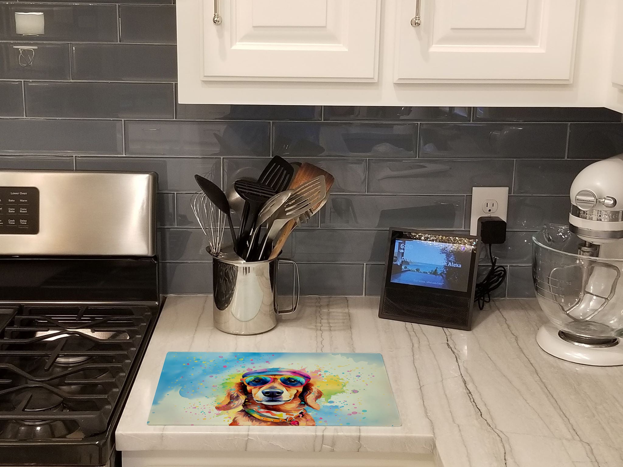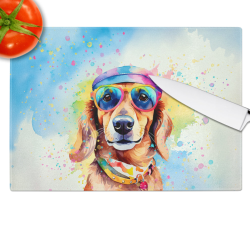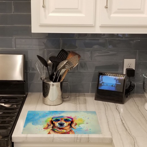 Glass Cutting Board featuring breed specific Dachshund artwork. Introduce your kitchen to the vibrant, large Decorative Glass Cutting Board from Caroline’s Treasures. Crafted from resilient tempered glass, this board is not only a utilitarian necessity but also a colorful art piece. With its generous dimensions of 15 inches in height and 12 inches in length, it offers ample space for all your cutting needs. Every piece showcases captivating artwork from distinguished artists, bringing an aesthetic edge to your kitchen. Beyond its attractive design, this cutting board ensures your countertop stays pristine and unscathed, owing to its heat-resistant properties. Engineered with user convenience in mind, it features non-skid feet for stability, and rounded corners for additional safety. Its robust construction renders it virtually unbreakable, guaranteeing longevity. The board comes with protective feet bumpers, maintaining its position during use. This product is recommended to be hand washed only. Proudly printed and assembled in the United States, this cutting board exemplifies superior craftsmanship. With Caroline’s Treasures’ Decorative Glass Cutting Board, you’re investing in a blend of functionality and artistic flair.