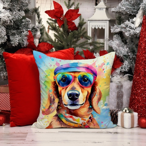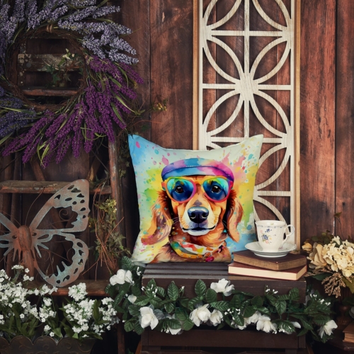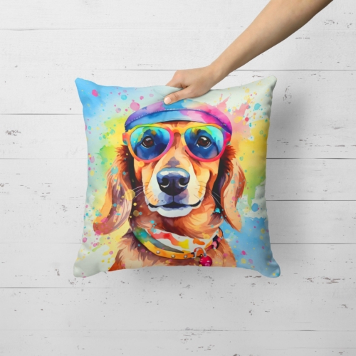 Throw Pillow featuring breed specific Dachshund artwork. Revitalize your outdoor or indoor living space with Caroline’s Treasures 18×18 Fabric Decorative Pillow. With a generously sized dimension of approximately 18 inches by 18 inches, this pillow makes a comfortable and aesthetic addition to any seating area. Made from a unique, water-resistant material developed by Caroline’s Treasures, the pillow sham is 100% polyester fabric that’s durable and ready to weather any condition. Its vibrant, full-color artwork will not fade over time as it is dyed with color-fast dyes. Whether you place it on your patio furniture, porch, veranda, or indoor couch, its soft canvas fabric ensures a cozy experience. The pillow is handcrafted in the United States, featuring a sham created from three pieces of fabric and a polyester insert for enduring shape and overstuffed comfort. Despite being robustly built to endure the outdoors, it is as soft and snug as your favorite indoor cushions. Please note, as all our pillows are handmade, sizes may vary slightly, adding to the charm of this unique decorative item.