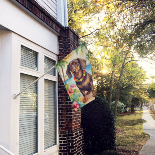 House Flag featuring breed specific Dachshund artwork. Presenting our Heavy Duty Polyester House Size Decorative Sleeve Pole Flag, a vibrant addition to enhance the aesthetic appeal of your home. This large decorative flag, measuring approximately 28 x 40 inches, offers ample coverage and visibility. Each flag is meticulously sewn and made individually, ensuring a unique piece that may slightly vary in size. It’s a sleeve pole flag, designed to fit a standard decorative flag pole effortlessly. Please note that the flag pole and bracket are not included and should be purchased separately. What sets our flag apart is its dual-sided print. The design is mirrored on both sides of the fabric, allowing for uniform visibility regardless of the angle. Printed in full color, our flag showcases vibrant hues that truly stand out. To ensure lasting vibrancy and durability, the dyes are heat-set into the fabric. This ensures your flag remains bright and captivating through various weather conditions. Elevate the look of your home with our Heavy Duty Polyester House Size Decorative Sleeve Pole Flag!