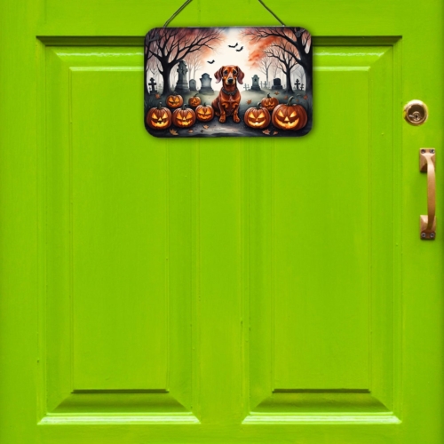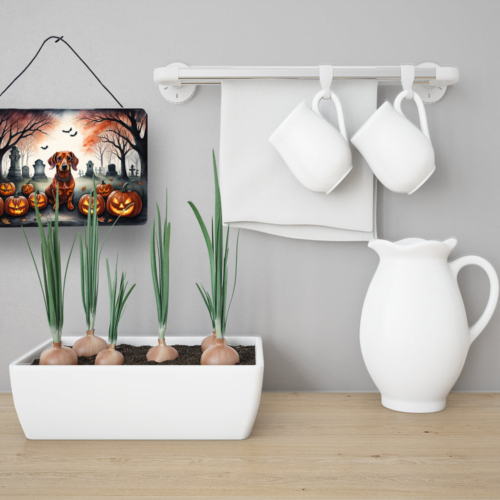 Wall or Door Hanging Prints featuring breed specific Dachshund artwork. Celebrate Halloween with this Halloween Metal Print. Add a splash of color and artistic flair to any indoor or outdoor space with our Aluminum Artwork Prints. These unique prints, featuring full-color, multicolor designs, provide a versatile decorative touch that can enhance a kitchen, bathroom, office, outdoor patio, or even the front door area. Each print measures 8 inches by 12 inches, making it the perfect size to catch the eye without overwhelming your space. Constructed with durability in mind, these prints can be placed outdoors and withstand direct sunlight for a significant amount of time before any fading begins. Designed for easy installation, each print features a black hanging rope and has a lightweight profile. This allows for quick hanging with just about any nail or screw. For safety and aesthetic appeal, the print’s corners are gently rounded. The back of the print showcases a brushed silver color for an added touch of elegance. Rust and fade-resistant, these Aluminum Artwork Prints are not only beautiful but are also built to last. Elevate your space with these stunning prints, crafted with care and artistic passion.