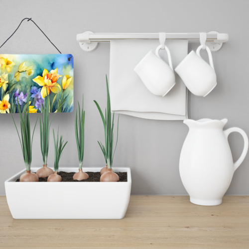 Wall or Door Hanging Prints featuring breed specific Daffodils artwork. Add a splash of color and artistic flair to any indoor or outdoor space with our Aluminum Artwork Prints. These unique prints, featuring full-color, multicolor designs, provide a versatile decorative touch that can enhance a kitchen, bathroom, office, outdoor patio, or even the front door area. Each print measures 8 inches by 12 inches, making it the perfect size to catch the eye without overwhelming your space. Constructed with durability in mind, these prints can be placed outdoors and withstand direct sunlight for a significant amount of time before any fading begins. Designed for easy installation, each print features a black hanging rope and has a lightweight profile. This allows for quick hanging with just about any nail or screw. For safety and aesthetic appeal, the print’s corners are gently rounded. The back of the print showcases a brushed silver color for an added touch of elegance. Rust and fade-resistant, these Aluminum Artwork Prints are not only beautiful but are also built to last. Elevate your space with these stunning prints, crafted with care and artistic passion.
