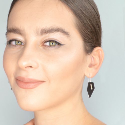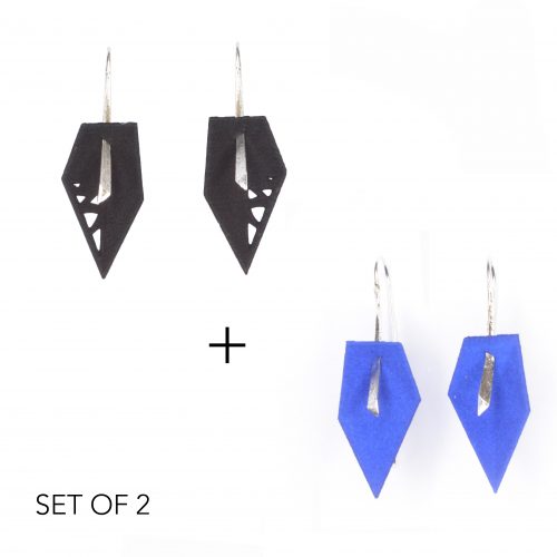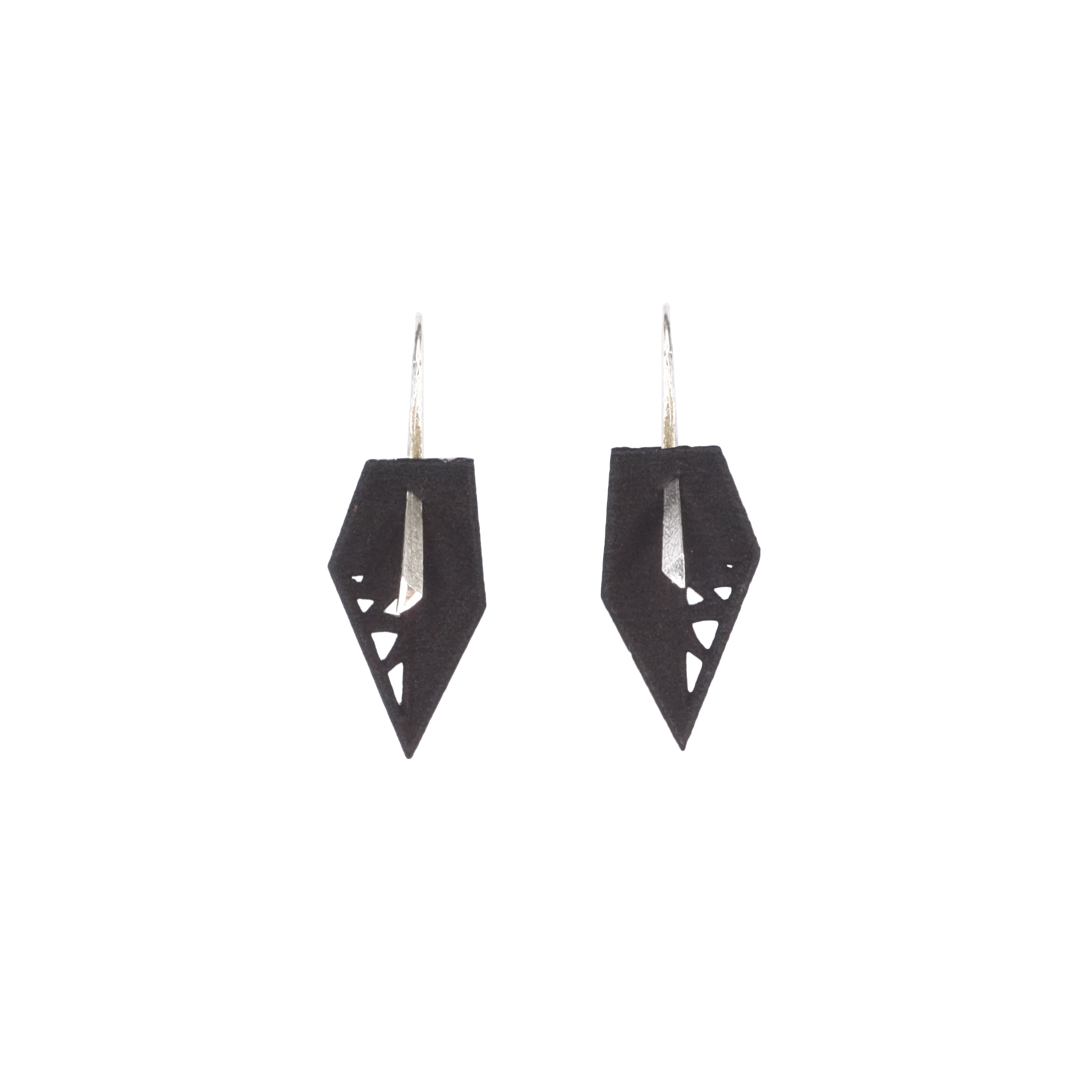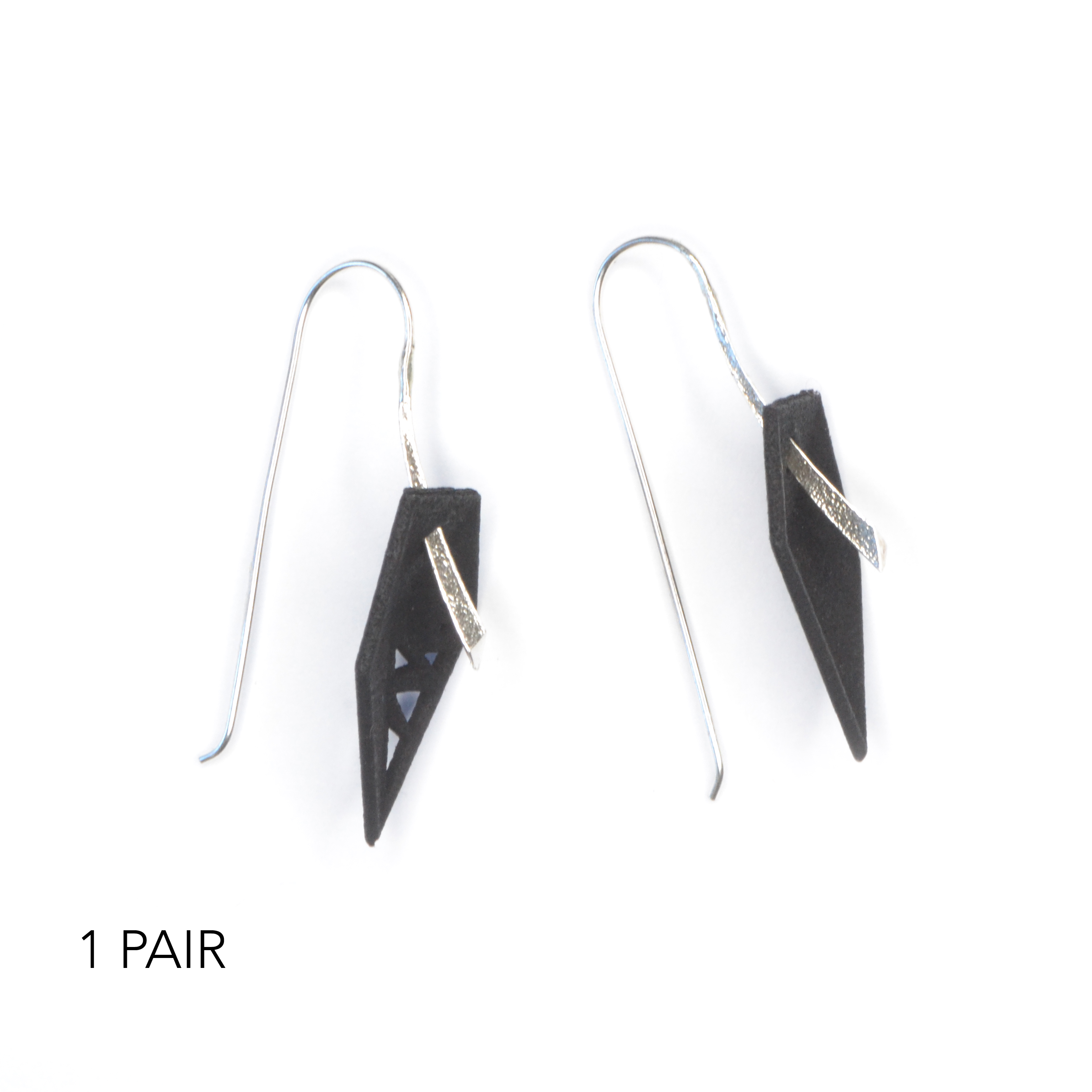 These cute dangles have a sterling silver hook and a colourful 3D printed nylon asymmetrical pentagon.