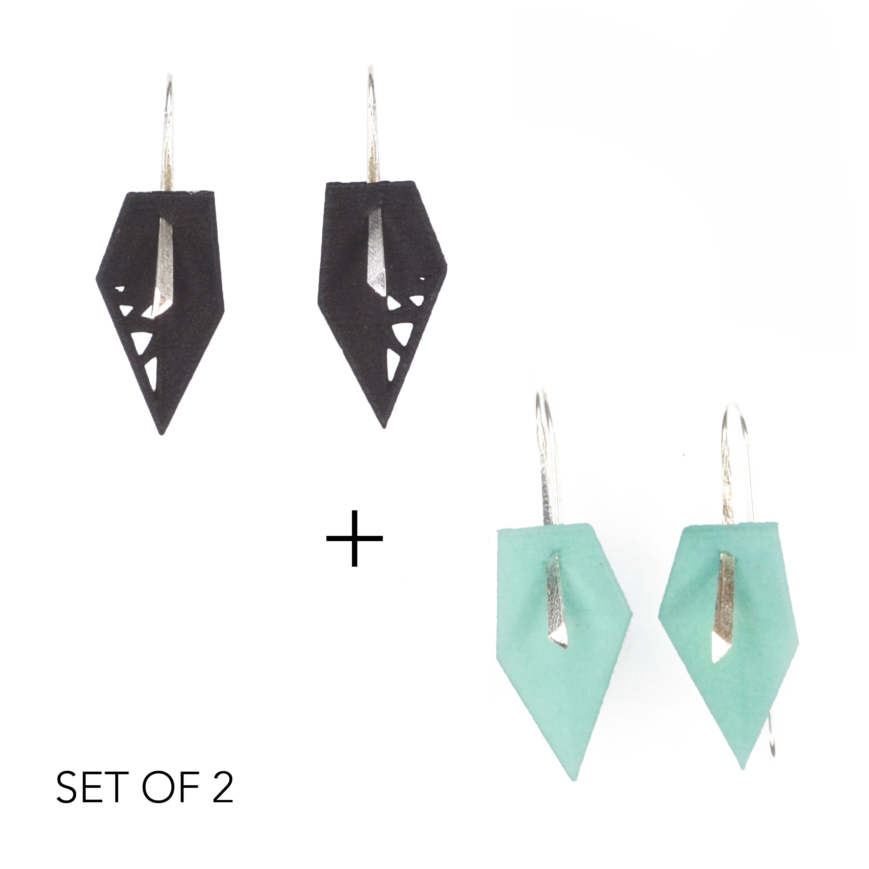 These beautiful earrings come in a set with two colours of your choice, you can pick between perforated and non-perforated design.These minimal geometric earrings are light and colourful, versatile and modern, they are perfect to spice up your everyday style.