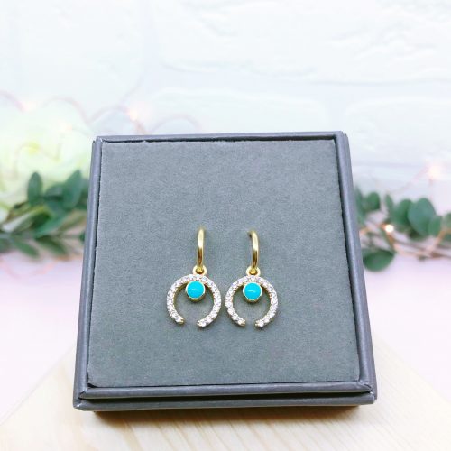 These dainty cubic zirconia horn charm hoop earrings are perfect for wearing alone or layering up with other hoops and studs to create your own style statement.