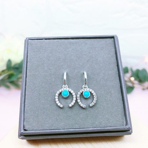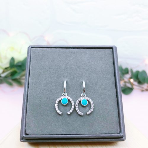 These dainty cubic zirconia horn charm hoop earrings are perfect for wearing alone or layering up with other hoops and studs to create your own style statement.