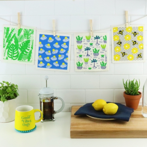 Our Daisies Swedish Dishcloths are made from an all natural pairing of cotton/cellulose and the material is more hygienic than a sponge.