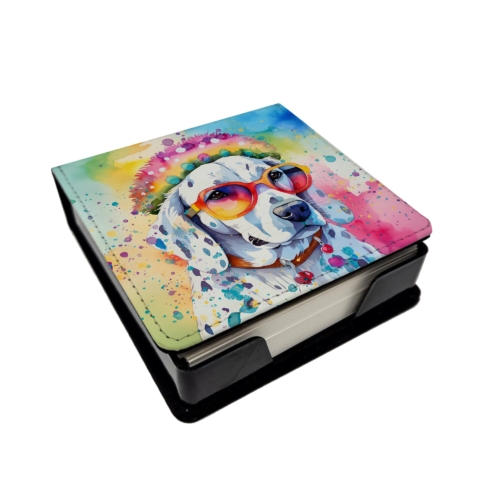 PU Leather Note Paper Holder featuring breed specific Dalmatian artwork. Elevate your workspace with this PU Leather Note Paper Holder, crafted to resemble luxurious leather without the use of animal products. Made from durable synthetic PU leather, it offers both a premium look and eco-friendly appeal. This note holder, compactly sized at 4.25 x 4.25 x 1.25 inches, includes about 160 sheets of 3.75 x 3.75-inch note paper—ideal for quick notes and reminders. An exclusive artist-designed cover makes each holder uniquely vibrant, adding a splash of color and personality to any desk or office. The discrete design keeps note paper hidden, maintaining a neat and organized workspace. Perfect as a gift or for personal use, this stylish holder is refillable with standard paper, ensuring long-lasting utility. A must-have for anyone seeking a sophisticated, artful touch to their workspace while supporting animal-friendly products. Add style, organization, and creativity to your everyday routine with this elegant note paper holder.