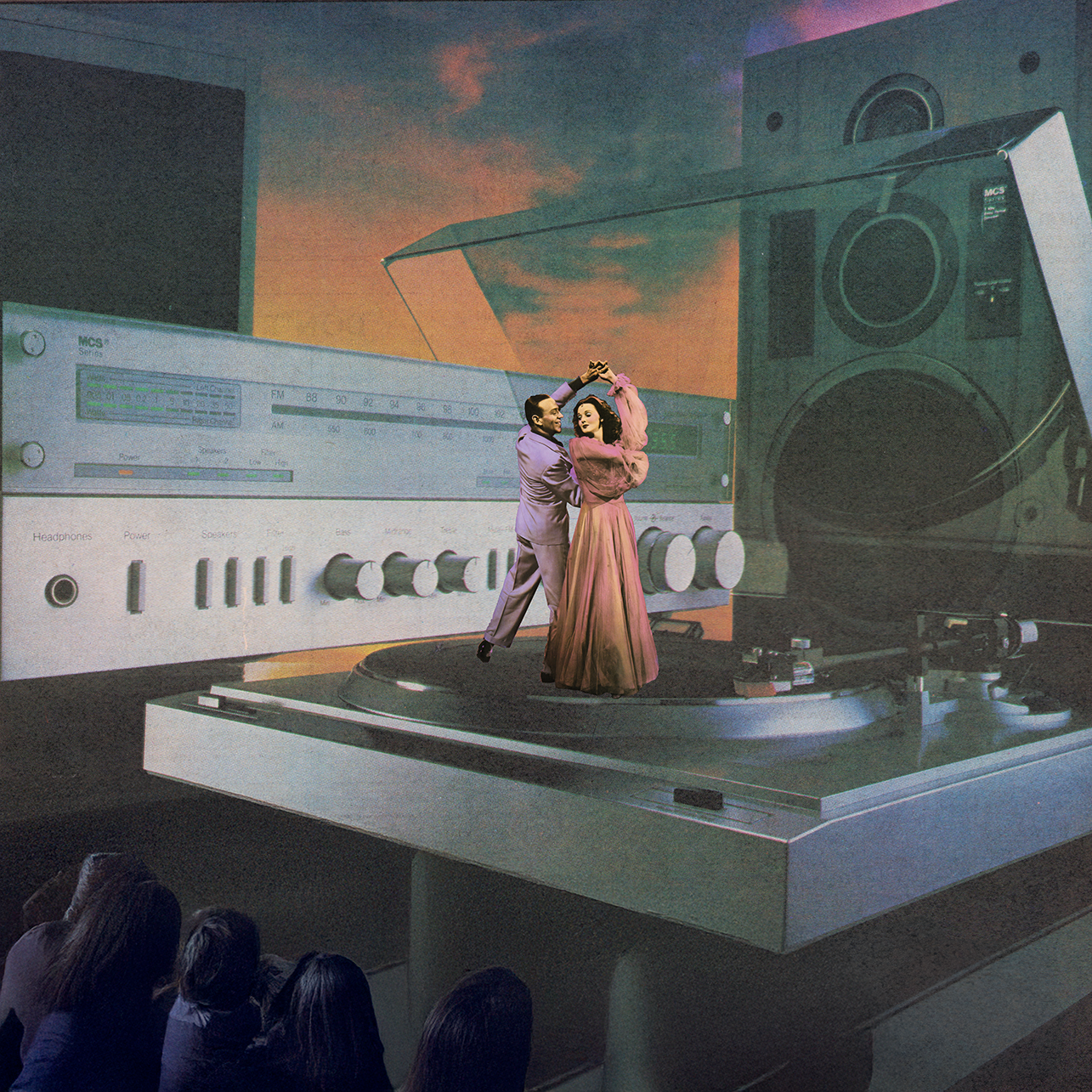 “Dancing in the Moonlight” is a nostalgic collage art piece depicting parents gracefully dancing atop a spinning vinyl record player while their children watch from afar, bathed in the soft glow of moonlight. Blending music, memory, and movement, this piece captures the timeless rhythm of love and the moments that leave lasting imprints on those who witness them.