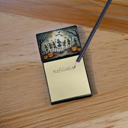 Celebrate Halloween with this Halloween Sticky Note Holder. Add a touch of creativity and flair to your desk with the Decorative Sticky Note Holder from Caroline’s Treasures. This uniquely designed sticky note dispenser will not only keep your notes in one place but also add an artistic element to your workspace. The top of the holder features beautiful artwork that is sure to catch the eye. Crafted for convenience, this sticky note holder comes with a small pad of 3-inch x 3-inch sticky notes at the bottom. The holder is designed for easy refilling; simply remove the last sheet of a new sticky note pad and stick it onto the board. This feature ensures you will always have sticky notes at your disposal. This Sticky Note Holder makes a perfect gift. Be it for your colleagues at work, your Facebook friends, or even your dog groomer or hairdresser, this versatile product fits the bill. You can use it for making grocery lists, leaving notes for loved ones, or for jotting down important reminders. The bottom board is rigid and can be magnetized by adding a business card size magnet to the back (sold separately). This makes it even more versatile, allowing you to place it on a refrigerator or any other magnetic surface. With this Sticky Note Holder, you’re not only organizing your notes, but also personalizing your space.