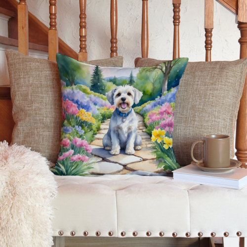 Throw Pillow featuring breed specific Dandie Dinmont Terrier artwork. Add a touch of vibrancy and comfort to your outdoor seating with Caroline’s Treasures Fabric Decorative Pillow. Measuring approximately 14 inches by 14 inches, this outdoor pillow is crafted to elevate the appeal of your patio furniture, infusing it with vivid color and artistic flair. The pillow includes a 100% Polyester Fabric sham filled with a quality pillow form to provide superior comfort. Innovatively made from our brand new material, specifically woven for its water resistance, this pillow is designed for durability. The soft canvas fabric offers versatility in use, fit for your indoor couch or your outdoor patio, porch, or veranda. The fabric is dyed with colorfast dyes built for resilience against weather conditions, ensuring the pillow retains its beauty over time. Constructed by sewing three fabric pieces to create a sham, the polyester insert is then nestled inside to form the pillow, resulting in an overstuffed pillow that maintains its shape. Both the sham and the pillow insert are proudly made in the United States. As the pillows are handcrafted, there may be minor variations in size, further enhancing their unique charm. Experience comfort in style with Caroline’s Treasures Fabric Decorative Pillow.