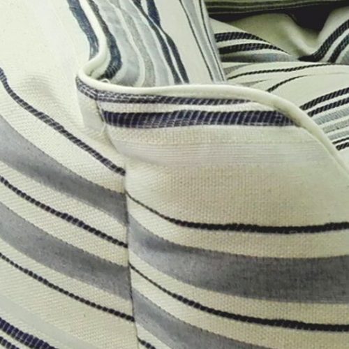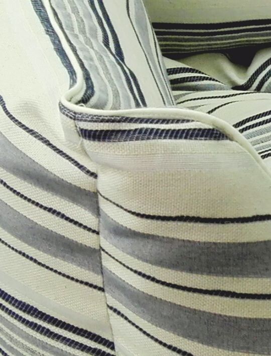 Sturdy cuddly woven furniture design cover and raw white cotton piping.