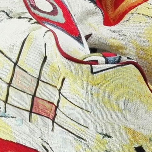 Solid, particularly high-quality and robust furniture design cover with woven check pattern and dark red satin piping.