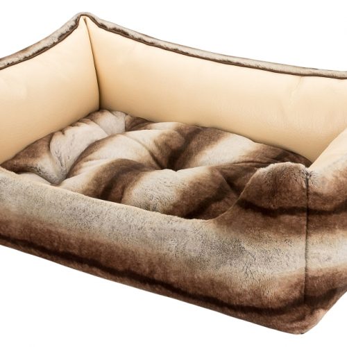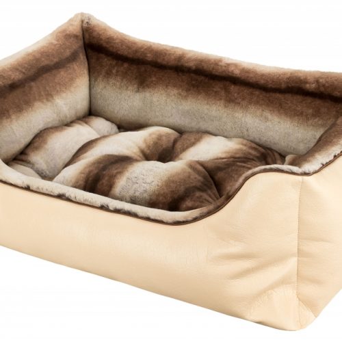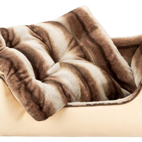 The other side consists of a quality high-end woven fur with incomparable super soft fur and silky shine. The side parts and the inside cushion can be turned over, so that the fur or leather side is either inside or outside, as desired. The luxurious look of this dog bed makes it something very special and at the same time gives your dog an incredibly cuddly silky soft sleeping experience.