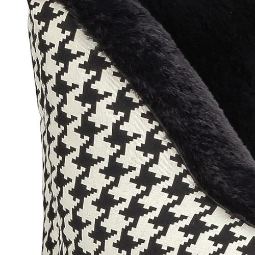 One side with woven through black and white houndstooth pattern, the other side made of a deep black woven fur in highest quality.