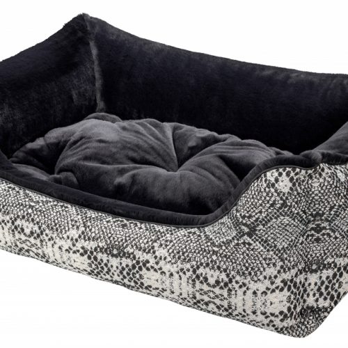 The cover consists of a designer fabric with a woven black and white houndstooth pattern, decorated with a black satin piping. The robust fabric is wonderfully smooth, hair-repellent and is Ökotex Standard 100 certified. The other side is made of a quality high-end woven fur with incomparable super soft fur and silky shine. The side parts and the inside cushion can be turned over so that the fur or fabric side is either inside or outside, depending on your wishes. The luxurious look of this dog bed makes it something very special and at the same time gives your dog an incredibly cuddly sleeping experience.