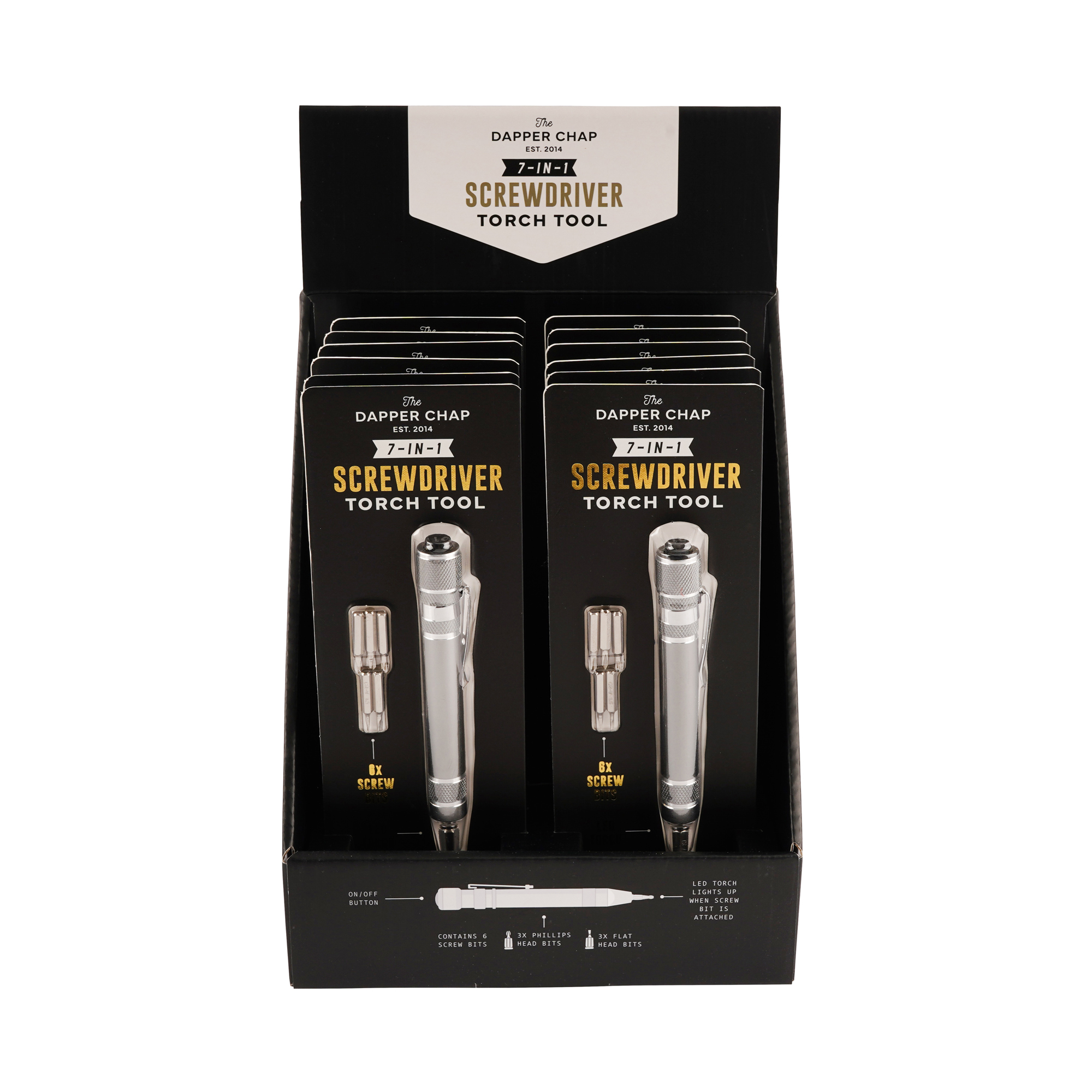 7 Tools in 1 – Includes 3 x Philips head bits and 3 x flat head bits, neatly stored within the tool so you’ll always have the right size ready when you need it.