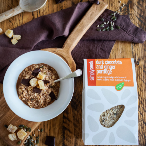 British grown jumbo oats, sunflower seeds and pumpkin seeds, Belgian Dark Chocolate (70% cocoa) & crystallised Ginger. High in zinc, magnesium and plant based omega 3.