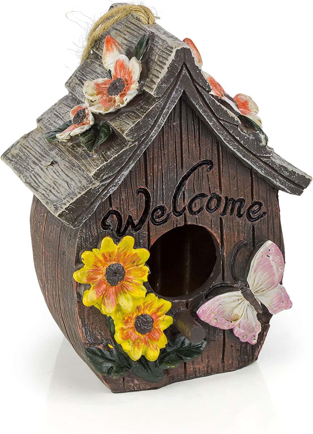 Dawhud Direct Hanging Bird Houses for Outside, Hand-Painted Bird Houses for Outdoors Decorative Birdhouses (Butterfly and Flowers Welcome)