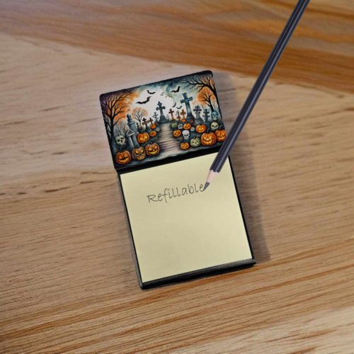 Celebrate Halloween with this Halloween Sticky Note Holder. Add a touch of creativity and flair to your desk with the Decorative Sticky Note Holder from Caroline’s Treasures. This uniquely designed sticky note dispenser will not only keep your notes in one place but also add an artistic element to your workspace. The top of the holder features beautiful artwork that is sure to catch the eye. Crafted for convenience, this sticky note holder comes with a small pad of 3-inch x 3-inch sticky notes at the bottom. The holder is designed for easy refilling; simply remove the last sheet of a new sticky note pad and stick it onto the board. This feature ensures you will always have sticky notes at your disposal. This Sticky Note Holder makes a perfect gift. Be it for your colleagues at work, your Facebook friends, or even your dog groomer or hairdresser, this versatile product fits the bill. You can use it for making grocery lists, leaving notes for loved ones, or for jotting down important reminders. The bottom board is rigid and can be magnetized by adding a business card size magnet to the back (sold separately). This makes it even more versatile, allowing you to place it on a refrigerator or any other magnetic surface. With this Sticky Note Holder, you’re not only organizing your notes, but also personalizing your space.