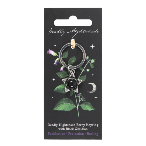Add a touch of the mysterious to your keys with this metal keyring featuring a Deadly Nightshade berry design and a black obsidian accent. Functional and striking, it’s a practical accessory with a gothic flair. Designed by Something Different Wholesale and part of the Venom and Vines collection of gothic home decor and accessories.