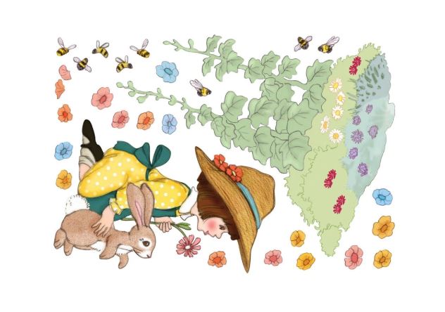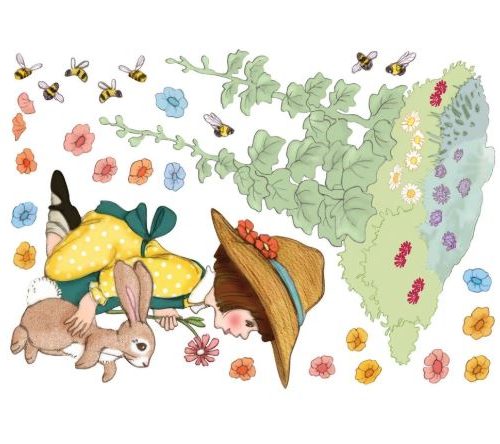 All stickers on backing paper sheet ~40 x 60cm, garden patch ~46.5 x 47cm.