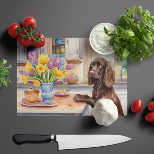 Glass Cutting Board featuring breed specific Boykin Spaniel artwork. Celebrate Easter with this Easter Cutting Board. Introduce your kitchen to the vibrant, large Decorative Glass Cutting Board from Caroline’s Treasures. Crafted from resilient tempered glass, this board is not only a utilitarian necessity but also a colorful art piece. With its generous dimensions of 15 inches in height and 12 inches in length, it offers ample space for all your cutting needs. Every piece showcases captivating artwork from distinguished artists, bringing an aesthetic edge to your kitchen. Beyond its attractive design, this cutting board ensures your countertop stays pristine and unscathed, owing to its heat-resistant properties. Engineered with user convenience in mind, it features non-skid feet for stability, and rounded corners for additional safety. Its robust construction renders it virtually unbreakable, guaranteeing longevity. The board comes with protective feet bumpers, maintaining its position during use. This product is recommended to be hand washed only. Proudly printed and assembled in the United States, this cutting board exemplifies superior craftsmanship. With Caroline’s Treasures’ Decorative Glass Cutting Board, you’re investing in a blend of functionality and artistic flair.