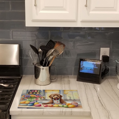 Glass Cutting Board featuring breed specific Labradoodle artwork. Celebrate Easter with this Easter Cutting Board. Introduce your kitchen to the vibrant, large Decorative Glass Cutting Board from Caroline’s Treasures. Crafted from resilient tempered glass, this board is not only a utilitarian necessity but also a colorful art piece. With its generous dimensions of 15 inches in height and 12 inches in length, it offers ample space for all your cutting needs. Every piece showcases captivating artwork from distinguished artists, bringing an aesthetic edge to your kitchen. Beyond its attractive design, this cutting board ensures your countertop stays pristine and unscathed, owing to its heat-resistant properties. Engineered with user convenience in mind, it features non-skid feet for stability, and rounded corners for additional safety. Its robust construction renders it virtually unbreakable, guaranteeing longevity. The board comes with protective feet bumpers, maintaining its position during use. This product is recommended to be hand washed only. Proudly printed and assembled in the United States, this cutting board exemplifies superior craftsmanship. With Caroline’s Treasures’ Decorative Glass Cutting Board, you’re investing in a blend of functionality and artistic flair.