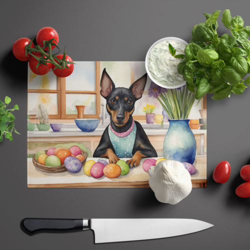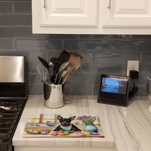 Glass Cutting Board featuring breed specific Manchester Terrier artwork. Celebrate Easter with this Easter Cutting Board. Introduce your kitchen to the vibrant, large Decorative Glass Cutting Board from Caroline’s Treasures. Crafted from resilient tempered glass, this board is not only a utilitarian necessity but also a colorful art piece. With its generous dimensions of 15 inches in height and 12 inches in length, it offers ample space for all your cutting needs. Every piece showcases captivating artwork from distinguished artists, bringing an aesthetic edge to your kitchen. Beyond its attractive design, this cutting board ensures your countertop stays pristine and unscathed, owing to its heat-resistant properties. Engineered with user convenience in mind, it features non-skid feet for stability, and rounded corners for additional safety. Its robust construction renders it virtually unbreakable, guaranteeing longevity. The board comes with protective feet bumpers, maintaining its position during use. This product is recommended to be hand washed only. Proudly printed and assembled in the United States, this cutting board exemplifies superior craftsmanship. With Caroline’s Treasures’ Decorative Glass Cutting Board, you’re investing in a blend of functionality and artistic flair.