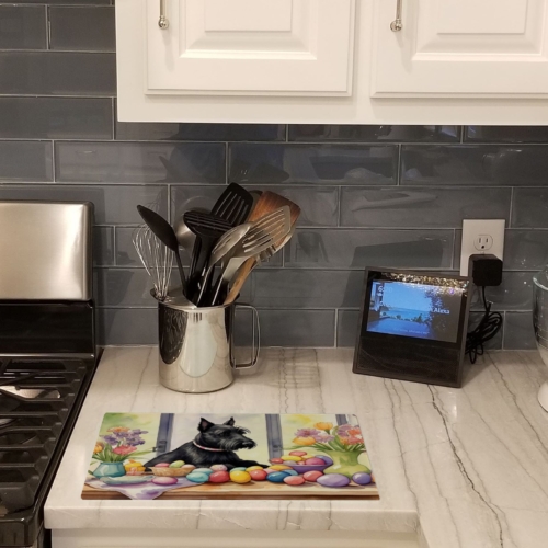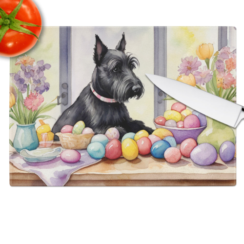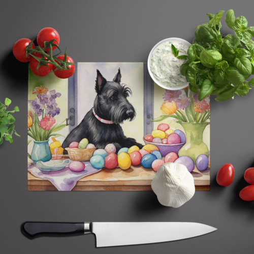 Glass Cutting Board featuring breed specific Scottish Terrier artwork. Celebrate Easter with this Easter Cutting Board. Introduce your kitchen to the vibrant, large Decorative Glass Cutting Board from Caroline’s Treasures. Crafted from resilient tempered glass, this board is not only a utilitarian necessity but also a colorful art piece. With its generous dimensions of 15 inches in height and 12 inches in length, it offers ample space for all your cutting needs. Every piece showcases captivating artwork from distinguished artists, bringing an aesthetic edge to your kitchen. Beyond its attractive design, this cutting board ensures your countertop stays pristine and unscathed, owing to its heat-resistant properties. Engineered with user convenience in mind, it features non-skid feet for stability, and rounded corners for additional safety. Its robust construction renders it virtually unbreakable, guaranteeing longevity. The board comes with protective feet bumpers, maintaining its position during use. This product is recommended to be hand washed only. Proudly printed and assembled in the United States, this cutting board exemplifies superior craftsmanship. With Caroline’s Treasures’ Decorative Glass Cutting Board, you’re investing in a blend of functionality and artistic flair.