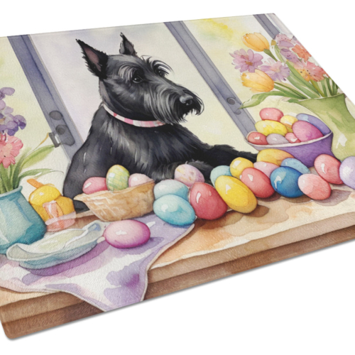 Glass Cutting Board featuring breed specific Scottish Terrier artwork. Celebrate Easter with this Easter Cutting Board. Introduce your kitchen to the vibrant, large Decorative Glass Cutting Board from Caroline’s Treasures. Crafted from resilient tempered glass, this board is not only a utilitarian necessity but also a colorful art piece. With its generous dimensions of 15 inches in height and 12 inches in length, it offers ample space for all your cutting needs. Every piece showcases captivating artwork from distinguished artists, bringing an aesthetic edge to your kitchen. Beyond its attractive design, this cutting board ensures your countertop stays pristine and unscathed, owing to its heat-resistant properties. Engineered with user convenience in mind, it features non-skid feet for stability, and rounded corners for additional safety. Its robust construction renders it virtually unbreakable, guaranteeing longevity. The board comes with protective feet bumpers, maintaining its position during use. This product is recommended to be hand washed only. Proudly printed and assembled in the United States, this cutting board exemplifies superior craftsmanship. With Caroline’s Treasures’ Decorative Glass Cutting Board, you’re investing in a blend of functionality and artistic flair.