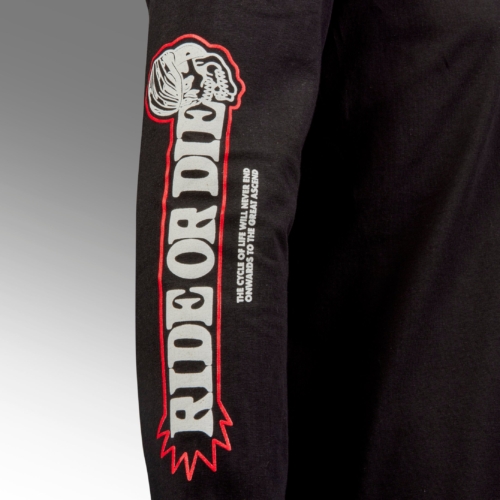 Demon dealer: time to RIDE OR DIE Man with embedded sickness in his crayola drawer, Illwookie delivers the goods on this banging tee Ring spun heavy weight t-shirt 100% Organic cottone Screen Printed design Oversized dealing demon design to rear, PARIA logo centralised on front Ride or die to sleeve