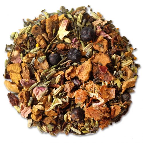 IngredientsGreen Tea(22%), Apple, Fennel(19.5%), Rosehip Shells, Turmeric, White Hibiscus, Lavender(3%), Ginger, Juniper Berry, Black Pepper, Rose Petals, Natural Flavouring.