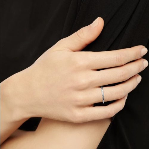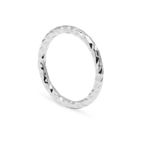 Crafted from sterling silver, the diamond band has multi-facets that effortlessly catch the light when worn. This unisex band is perfect for stacking or wearing alone for a minimal look.