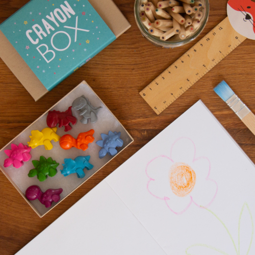 Are you looking for something different in your store? This set of dinosaur crayons will certainly add a splash of colour to your gifting or crafting area. Beautifully packaged in a way that is designed to look both exciting and professional on your store shelves but also to keep the ‘fun’ that crayons should be. Each packaged has a label on the back which tells the style. Please do scroll through all the pictures to see the packaging in full.