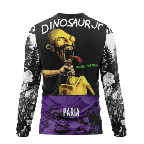You asked, and like a modern day Postman Pat we delivered. Formative American Alt rock pioneers Dinosaur Jr. make their much anticipated second foray into into the world of two wheeled technical fabrics with a mountain bike Featured artwork takes direct cues from Feel the Pain and Dinosaur, and should be pretty apt for you pushing on through in the pain cave Focused on all things gravel and bike packing we are developing cycling apparel which is designed to deliver for adventure riding off road This jersey is a pre-order item, and will be manufactured bespoke to customer requirements If multiple items are ordered then the full order will be despatched at point of product delivery into us unless otherwise specified *PLEASE NOTE* This jersey is made from recycled fabric