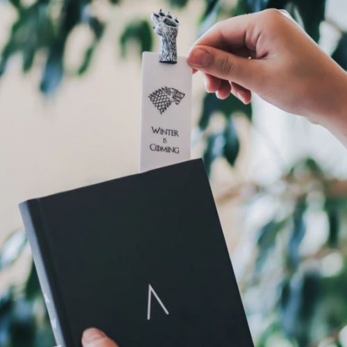 The bookmark is made of polymer clay, flawlessly painted with acrylic paint and finished with a varnish to seal and protect. They are attached to a hard-laminated cardboard bookmark with the inscription.