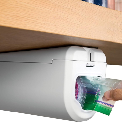 Perfect for busy mornings, simply grab and pull a sandwich bag with two fingers in under a second, thanks to the front-access design. No more opening drawers or cabinets – it’s right there when you need it, making storage hassle-free.Space-Saving Design: Mount this dispenser under your kitchen cabinet or inside a cabinet under the shelf to maximize space and reduce clutter on your countertops.Versatile Compatibility: Designed to hold quart, sandwich, and snack-sized food storage bags, keeping your kitchen essentials organized and within easy reach. (Note: 1 gal bags don’t fit)Durable and Sturdy: Made from high-quality materials, this dispenser is built to last, ensuring long-term organization in your kitchen.Easy Installation: Includes all necessary hardware for quick and secure mounting—get organized in minutes with a simple installation process.