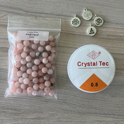 8mm beads for DIY projects. Each bag contains 130 beads. If you are making bracelets, this bag has enough beads to make 4-5 bracelets. Each purchase will include a roll of Crystal Tec String. Each roll has 18 feet of string. As an added gift, 4 charms included in purchase.
