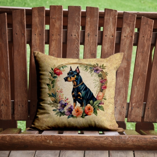 Throw Pillow featuring breed specific Doberman Pinscher artwork. Add a touch of vibrancy and comfort to your outdoor seating with Caroline’s Treasures Fabric Decorative Pillow. Measuring approximately 14 inches by 14 inches, this outdoor pillow is crafted to elevate the appeal of your patio furniture, infusing it with vivid color and artistic flair. The pillow includes a 100% Polyester Fabric sham filled with a quality pillow form to provide superior comfort. Innovatively made from our brand new material, specifically woven for its water resistance, this pillow is designed for durability. The soft canvas fabric offers versatility in use, fit for your indoor couch or your outdoor patio, porch, or veranda. The fabric is dyed with colorfast dyes built for resilience against weather conditions, ensuring the pillow retains its beauty over time. Constructed by sewing three fabric pieces to create a sham, the polyester insert is then nestled inside to form the pillow, resulting in an overstuffed pillow that maintains its shape. Both the sham and the pillow insert are proudly made in the United States. As the pillows are handcrafted, there may be minor variations in size, further enhancing their unique charm. Experience comfort in style with Caroline’s Treasures Fabric Decorative Pillow.