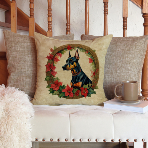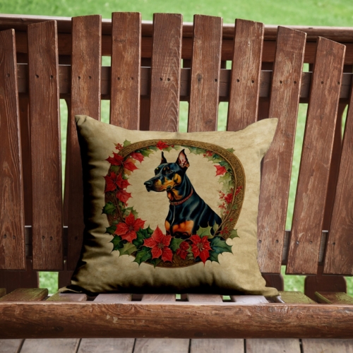 Doberman Pinscher Christmas Flowers Throw Pillow