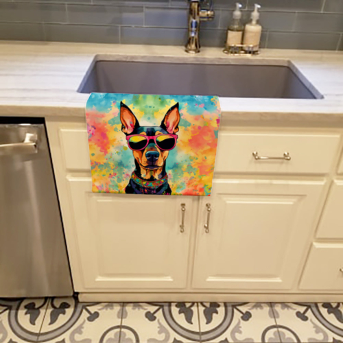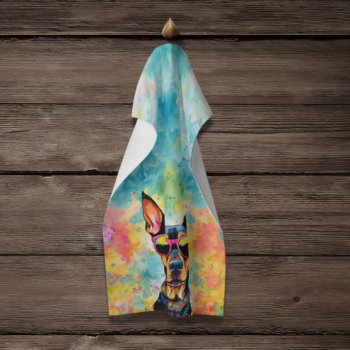 Kitchen Towel featuring breed specific Doberman Pinscher artwork. Experience the perfect blend of aesthetic appeal and functional excellence with our Plush Velour Kitchen Towels. These are not your ordinary decorative kitchen towels that gather dust. Instead, they are designed to be as practical as they are stylish. The front layer of our towel is constructed from a minky plush polyester, known for its durability and color retention. Unlike conventional kitchen towels, the artwork on our towels is dyed directly into the fabric, ensuring vibrant colors that last. Polish your glassware to a brilliant sparkle using the plush front side of the towel. Flip to the back, crafted from 100% cotton terry loop, to exploit its exceptional absorbency for drying dishes or wiping down counters. Our kitchen towels redefine the concept of functional art, offering lasting quality that maintains the towel’s shape over time. Measuring 15 inches by 25 inches and weighing 2.3 lbs per dozen, these towels deliver an overwhelming sensory experience with their soft, plush, and smooth texture. The edges are meticulously finished with binding, enhancing their durability and visual appeal. For your convenience, these towels are machine washable and can be dried on low heat. After the first wash, the top fabric becomes even softer and fluffier, eliminating the need for ironing. Treat your kitchen to the luxury and functionality it deserves with our plush velour kitchen towels.