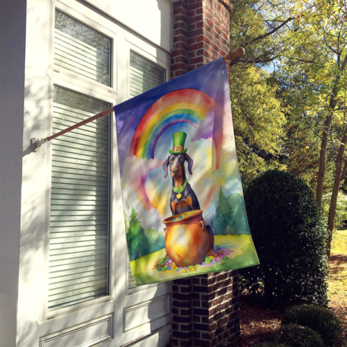 House Flag featuring breed specific Doberman Pinscher artwork. Celebrate St Patrick’s Day with this St Patrick’s Day Large Flag. Presenting our Heavy Duty Polyester House Size Decorative Sleeve Pole Flag, a vibrant addition to enhance the aesthetic appeal of your home. This large decorative flag, measuring approximately 28 x 40 inches, offers ample coverage and visibility. Each flag is meticulously sewn and made individually, ensuring a unique piece that may slightly vary in size. It’s a sleeve pole flag, designed to fit a standard decorative flag pole effortlessly. Please note that the flag pole and bracket are not included and should be purchased separately. What sets our flag apart is its dual-sided print. The design is mirrored on both sides of the fabric, allowing for uniform visibility regardless of the angle. Printed in full color, our flag showcases vibrant hues that truly stand out. To ensure lasting vibrancy and durability, the dyes are heat-set into the fabric. This ensures your flag remains bright and captivating through various weather conditions. Elevate the look of your home with our Heavy Duty Polyester House Size Decorative Sleeve Pole Flag!