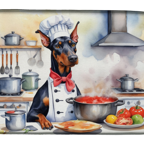 Dish Drying Mat featuring breed specific Doberman Pinscher artwork. Say goodbye to messy countertops and soggy dish towels with our innovative dish drying mat. Our high-quality dish drying pad is designed to keep your countertops dry while offering a stylish and efficient solution. Whether you’re air drying dishes, glasses, stemware, silverware, pots, pans, bottles, or even fruits and vegetables, our dish mat is the perfect choice. The 14 inches x 22 inches size fits most counters and dish drying racks, and the non-slip design ensures stability. Made with water-absorbent polyester and a polyurethane foam insert, our dish drying mat is not only functional but also durable. It’s machine washable and printed in the USA for long-lasting use. The beautiful artwork adds flair to your kitchen decor, making it a perfect housewarming gift or present for any occasion. Upgrade your kitchen experience with our absorbent and versatile dish drying mat.