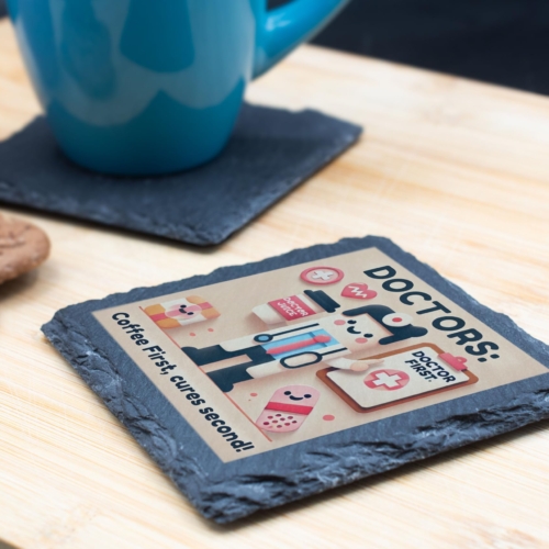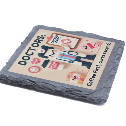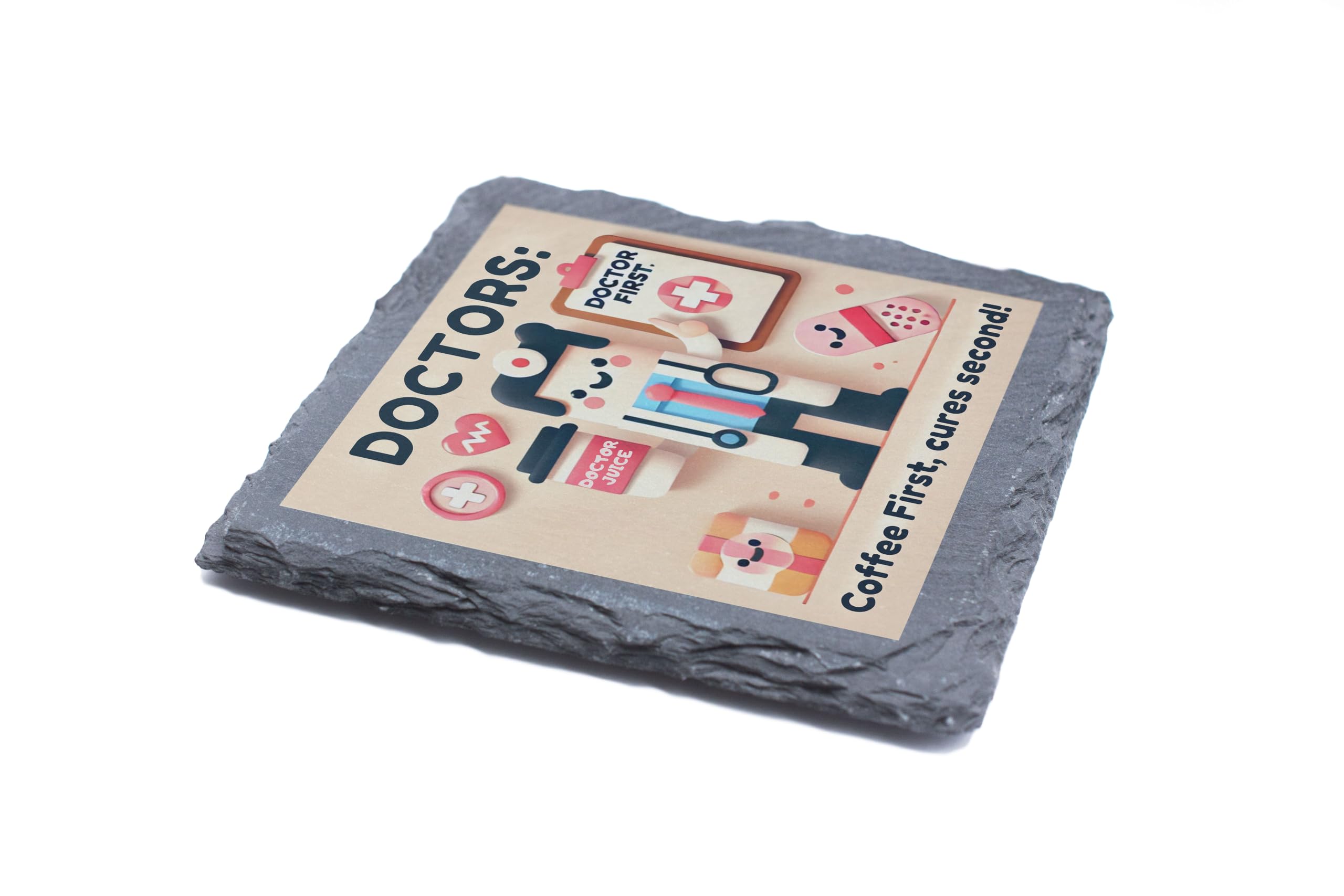 Add a dose of humor to the daily grind with the Doctor’s Humor Slate Coaster! This quirky coaster features the phrase “Coffee First, Cure Second” alongside a vibrant design, celebrating the lifesaving efforts of doctors with a playful twist. Crafted from high-quality slate, this coaster is both functional and decorative. It’s the perfect way to protect your surfaces while honoring the hardworking medical professionals who make a difference every day. Whether for a doctor?s office, home, or as a unique gift, this coaster is sure to bring smiles and laughs! Celebrate Healthcare Heroes: Playful design featuring “Coffee First, Cure Second,” honoring the dedication of doctors with a touch of humor. Premium Quality Slate: Durable and stylish, this coaster protects surfaces while adding character to any space. Perfect Doctor Gift: A thoughtful and fun gift for doctors, medical students, or healthcare workers for birthdays, appreciation events, or just because. Functional & Fun Decor: Keeps desks and tables safe from spills while showcasing a lighthearted design. Vivid & Engaging Design: The colorful illustration and witty phrase make this coaster a standout piece.