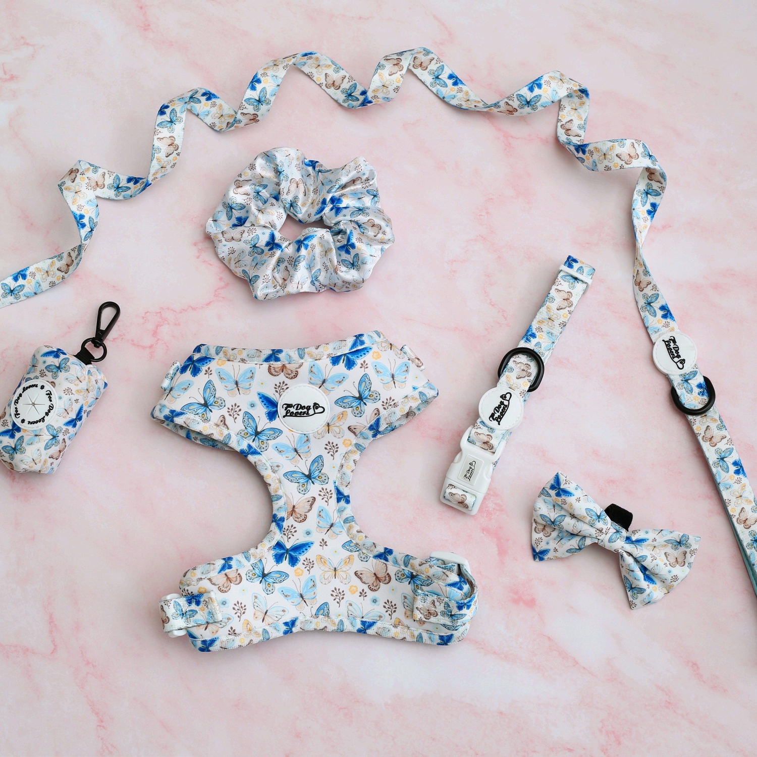 Matching items available: ID tag, Lead, Harness, Bow Tie, Bandana, Poop Bag H Holder and Scrunchie